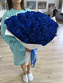 Охапка синих роз в декоративной упаковке
